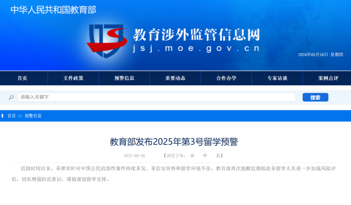 近段时间以来,菲律宾针对中国公民的恶性案件持续多发配资股票论坛,菲治安形势和留学环境不佳。教育部再次提醒近期拟赴菲留学人员进一步加强风险评估,切实增强防范意识,谨慎规划留学安排。