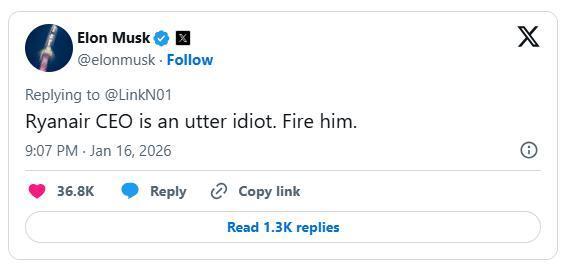 随着冲突的不断升级,双方的矛盾从技术层面延伸到了资本层面。针对奥利里称其为“有钱的白痴”等言论,马斯克在社交媒体上暗示,若瑞安航空董事会不解雇奥利里,他可能会直接采取行动。