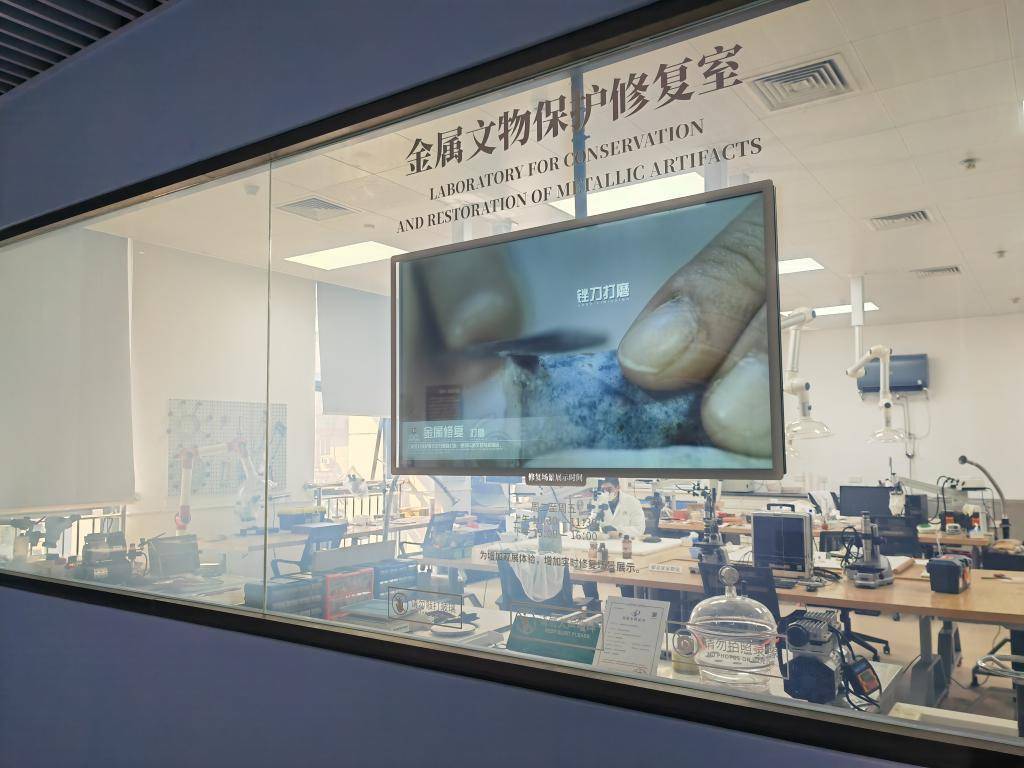 金属文物保护修复室因“破墙开窗”成为了展览的一部分。新华社记者 朱丽莉 摄