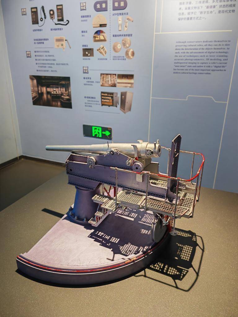 r展厅中央的3D打印克虏伯铁炮模型,便生动诠释了这一点。这台模型的诞生,是科技赋能文物修复的鲜活实践。因馆藏克虏伯要塞炮残缺严重,修复团队辗转多地博物馆寻访同类型实物,通过实地手动测量,利用软件进行工业制图,经建模、模拟复原后,利用现代制作工艺复刻出缺失零部件,最终实现科学修复。