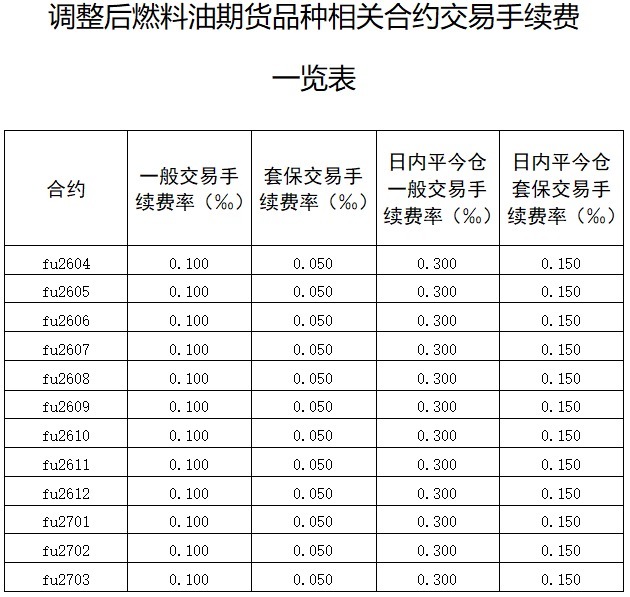 此外,自2026年3月11日交易(即3月10日晚夜盘)起,上海期货交易所对2026年交易手续费减收方案做如下调整:暂停燃料油、石油沥青、丁二烯橡胶期货及期权品种交易减收,相应交易减收比例调整为0。